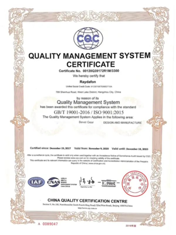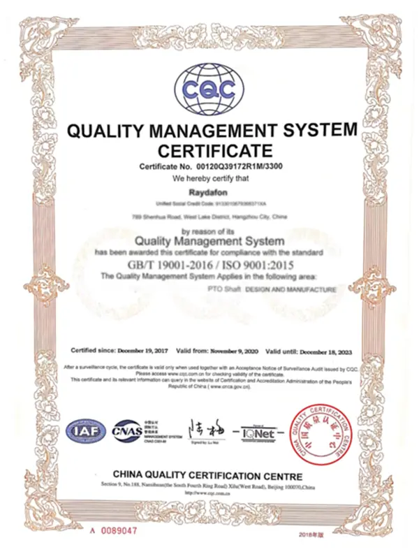Raydafon ले आफ्ना उत्पादनहरू विश्वव्यापी गुणस्तर मापदण्डहरू पूरा गर्न सुनिश्चित गर्न धेरै अन्तर्राष्ट्रिय प्रमाणपत्रहरू पारित गरेको छ। हामीले 2015 को वरिपरि निम्न महत्त्वपूर्ण प्रमाणपत्रहरू प्राप्त गर्यौं:
