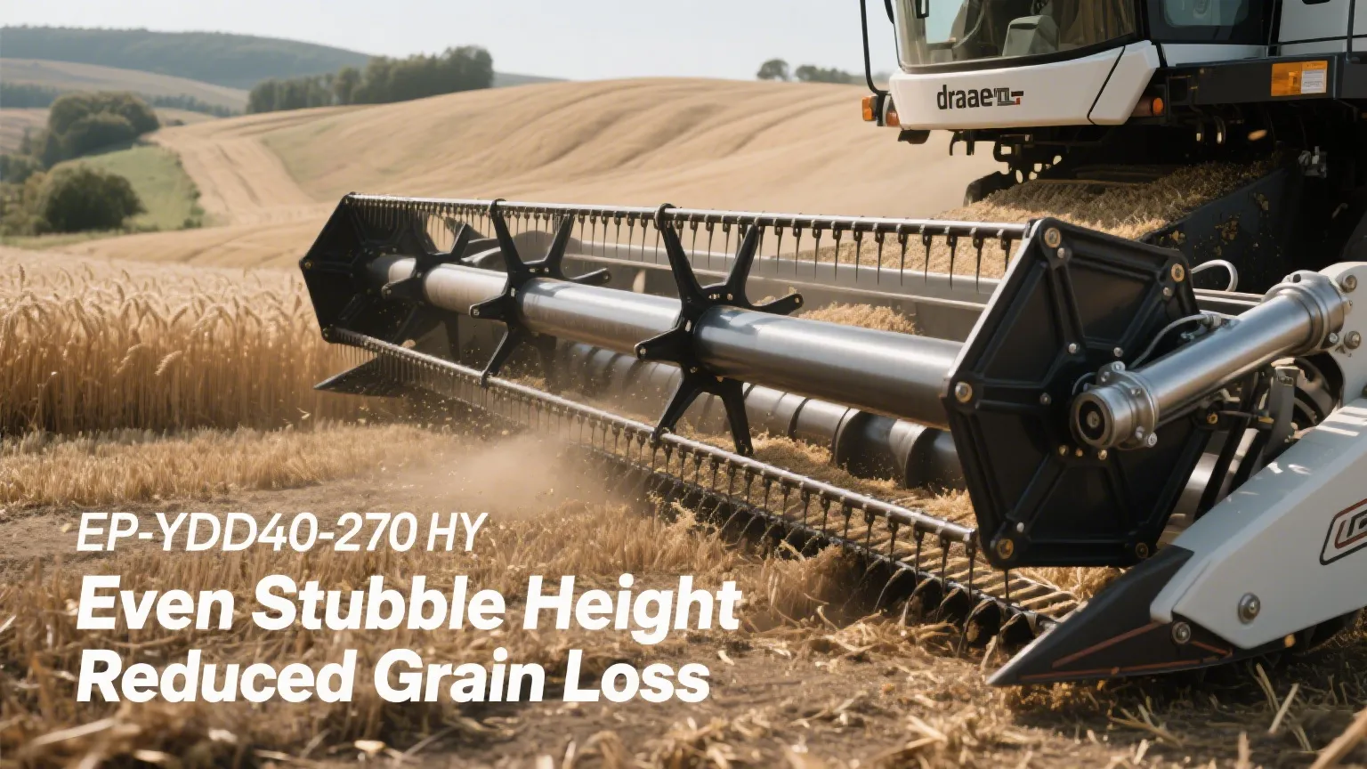 EP-YD40-270 ले यसलाई ठीक गर्छ। सटीक ड्रेपर लिफ्ट सिलिन्डरको रूपमा, यसले ड्रेपरलाई सही उचाइ र तनावमा समात्छ, त्यसैले गहुँ फिडरमा सजिलैसँग बग्छ, सोयाबिन कुचल हुँदैन, र चामलको दाना अक्षुण्ण रहन्छ। बीउहरू हल्लाउने अब कुनै झटका छैन - केवल स्थिर आन्दोलन जसले नोक्सानलाई न्यूनतम राख्छ।