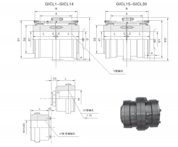 GIGL ड्रम आकार गियर युग्मन को प्रतिस्थापन