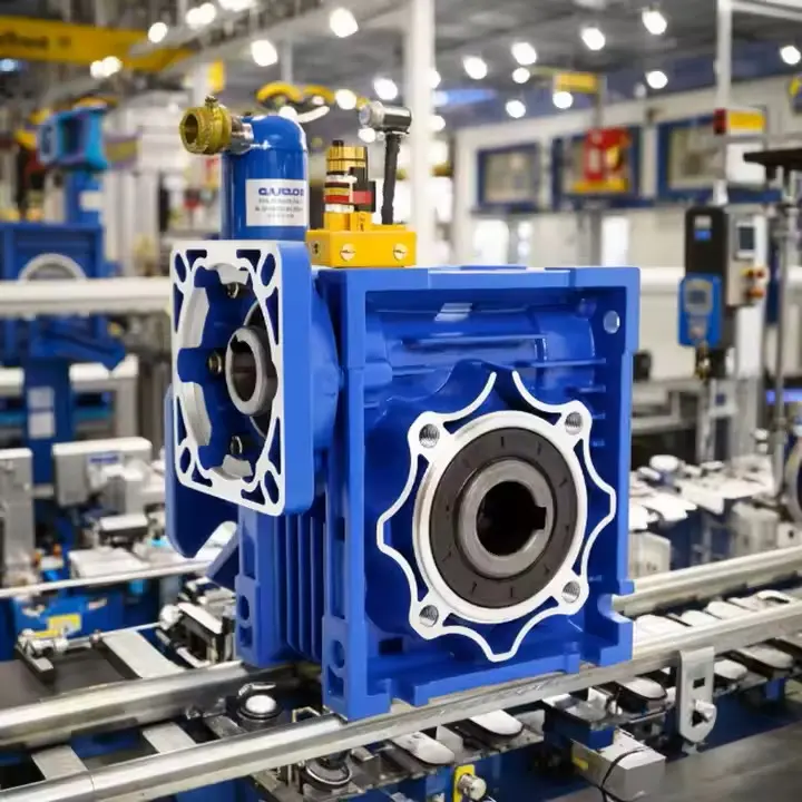 RV श्रृंखला वर्म गियर रिड्यूसरले एल्युमिनियम मिश्र धातु खोललाई अपनाउछ, जुन वजनमा हल्का छ र छिटो तातो अपव्यय हुन्छ। यो स्थापना ठाउँ-प्रतिबन्धित वा मोबाइल उपकरणहरूको लागि उपयुक्त छ। बक्सको सतह anodized छ र बलियो विरोधी जंग क्षमता छ। यो विशेष गरी आर्द्र र धुलो वातावरण वा कार्यस्थलहरूको लागि उपयुक्त छ जुन दीर्घकालीन स्थिर सञ्चालन आवश्यक छ। किरा उच्च-गुणस्तरको मिश्र धातु इस्पातबाट बनेको छ, कार्बराइजिङ क्वेन्चिङ र सटीक ग्राइन्डिङद्वारा प्रशोधन गरिएको छ, र उच्च-शक्तिको टिन ब्रोन्ज वर्म व्हीलसँग मेल खान्छ। यो उच्च meshing सटीकता र शान्त र स्थिर सञ्चालन छ। यसले निरन्तर लोड अवस्थाहरूमा पनि स्थिर उत्पादन कायम राख्न सक्छ र उपकरणको समग्र जीवन विस्तार गर्न सक्छ।